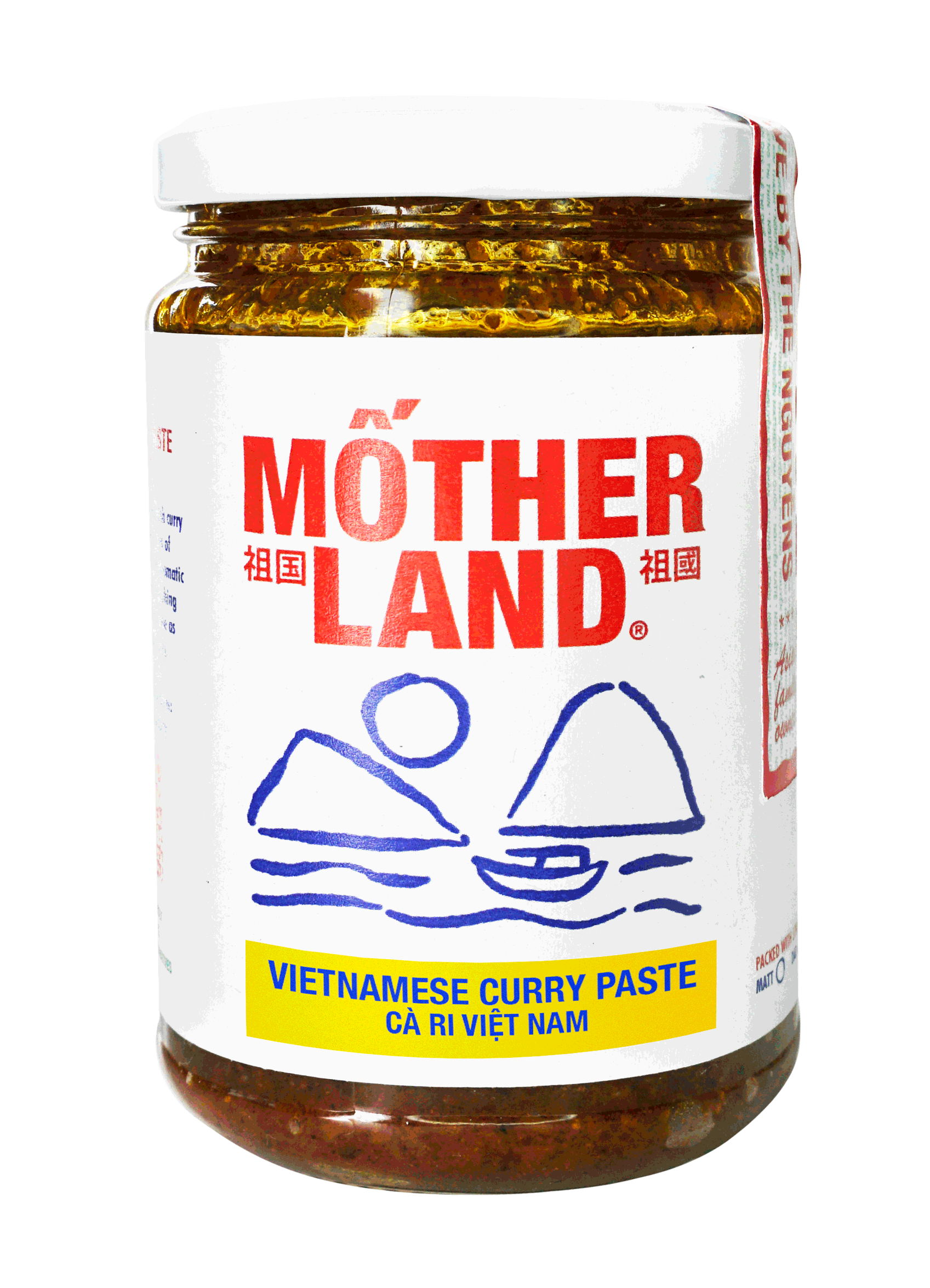 Turn down heat and add 3-4 tablespoons of mother land vietnamese Curry paste to the pan (more if you like the heat) and very gently heat for a minute until you smell the aromas. refridgerate the rest of the jar for another day.